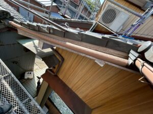 雨樋に関しても勾配のズレが生じ、部分的にオーバーフローが発生していました。