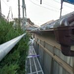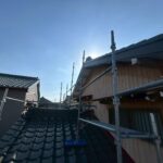 西尾市にて雨漏り修理〈玄関上の軒天から雨漏り・庇板金工事〉