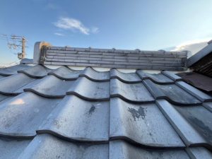 劣化した古い漆喰を取り除き、新しい漆喰を詰める「詰め直し」と、棟瓦を一度取り外してから新しく作り直す「棟瓦取り直し」などがあります。「棟瓦取り直し」は、棟瓦が歪んだり、倒壊しているなど劣化がひどく進んでいた場合におこなわれますが、今回はそこまでひどい状態ではありませんでしたので、漆喰部分のみの「塗り直し」をさせていただきました。