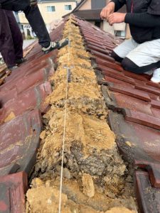 このままでは雨漏りが起こる可能性が高いため、棟瓦の組み直しをご提案いたしました。