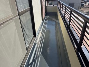 現地を点検すると、ベランダの防水シートにクラック(ひび割れ)ができていたため、ベランダを洗浄して塗装しました。